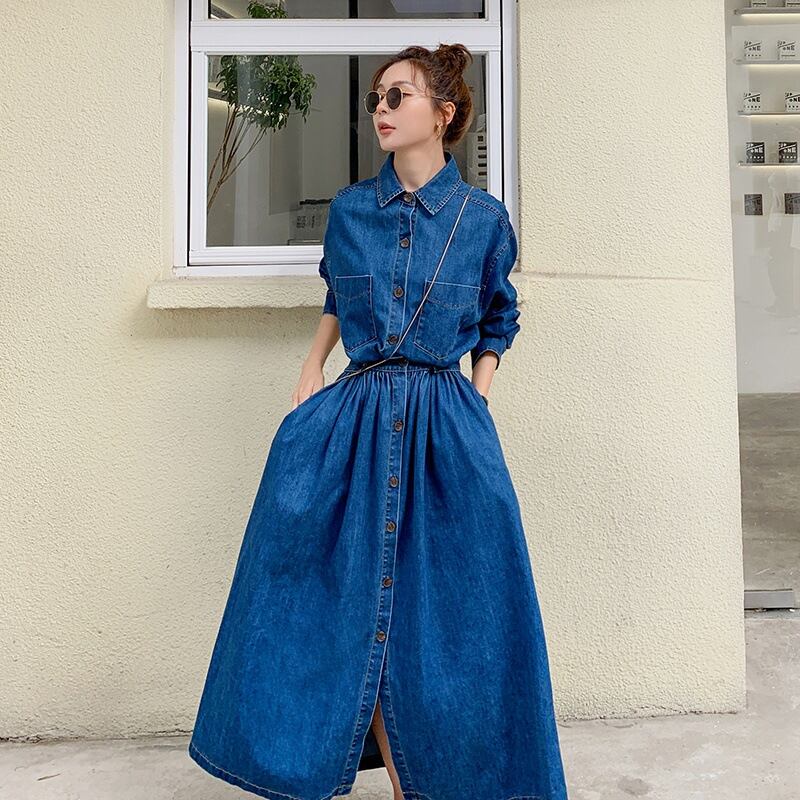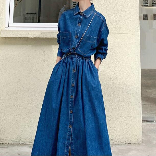 デニムワンピース ワンピース ロングワンピ 長袖 レディース 2024年新作 着痩せ