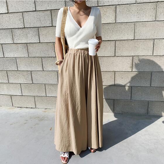 ワイドパンツ レディース ガウチョパンツ ボトムス ゴムウエスト 体型カバー 2021年夏新作