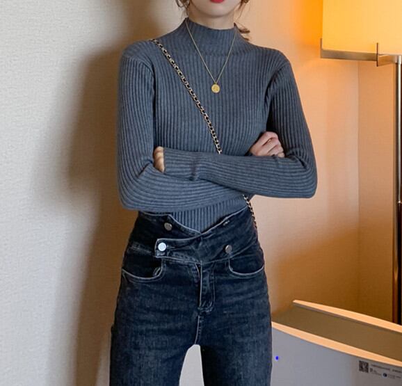 プルオーバー トップス レディース ニットトップス セーター ベーシック ハイネック シンプル 2024新作