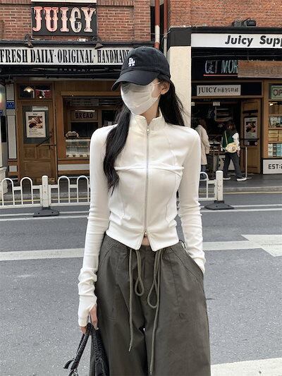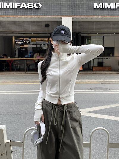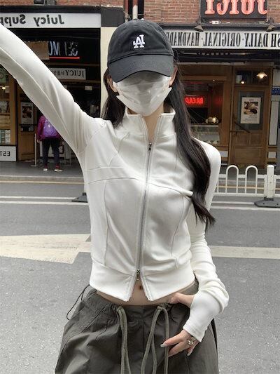 2024春夏 アウター ショート ブルゾン かわいい フル ブルゾン トップス ハイ スタンド ショート ストリート レディース 長袖 カジュアル ファッションお出かけトラック