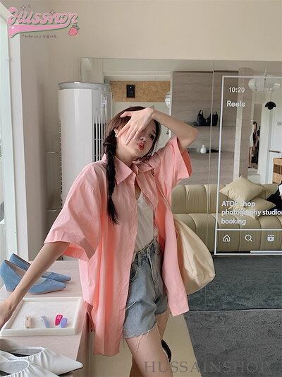 トップス レディース オーバーサイズ ビッグシルエット 半袖 シャツ 襟付き 日よけ 夏 羽織 ライトアウター 大きめ ゆったり カラバリ おしゃれ 韓国