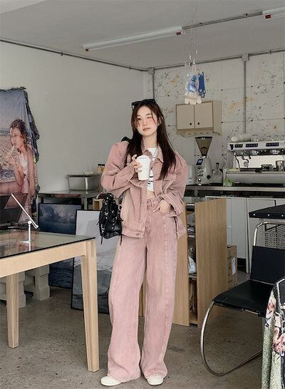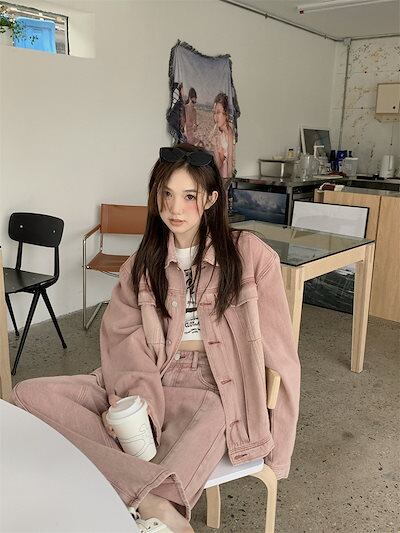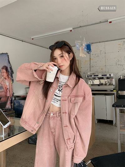 デニム セットアップ レディース 韓国 ピンク デニム オーバーサイズ ワイドパンツ デニムジャケット 上下セット ストレート アウター Gジャン 羽織り 学生 上下セットカジュアル韓国っぽY2k