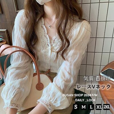 シアーシャツ初秋流行り 韓国ファッション レース秋先取り ブラウス レディース 夏着痩せ Vネック 長袖トップス 百掛け 気質 優しい セクシー長袖ブラウス Tシャツ シフォンブラウス