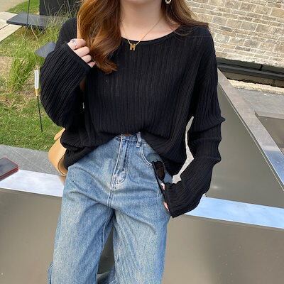 【早割SALE!】2024秋新作薄 アンダーウェア シンプル 無地 長袖トップスニットシアーシャツ 日韓国ファッション百掛け人気商品 長袖Tシャツ 流行りニットセーターゆったり快適インナー