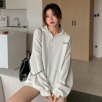 秋新作 怠惰な風 スウェット oversizeセミロング 体型カバー?長袖スウェット レディース カジュアル百掛け 大きいサイズ長袖トップス 学生 キャンパス風 長袖Tシャツ/トレーナー