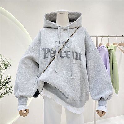 秋冬 流行り パーカー レディース oversizeゆったり百掛け フード付きパーカー プリント無地シンプル 百掛け スウェット 韓国ファッション トレーナー学生 可愛い長袖トップス