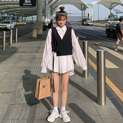 大きいサイズ セットアップ レディース 秋冬子女做 ベスト+ブラウス ゆったり 二点セット 流行り 長袖ブラウス 韓国ファッション スーツベスト 着痩せ体型カバー
