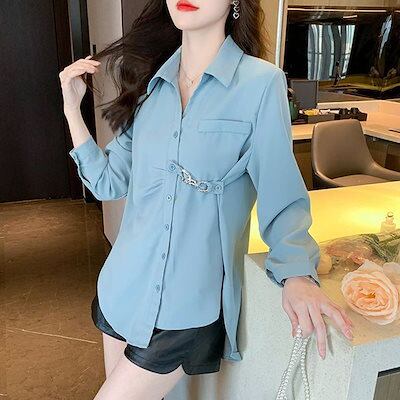 シアーシャツ S-4XL 大きいサイズ 初秋 長袖 ブラウス レディース ウエスト引き締め設計感 シャツ 韓国ファッション 高級感 着痩せブラウス 体型カバー? 百掛け 長袖トップス 通勤 流行り