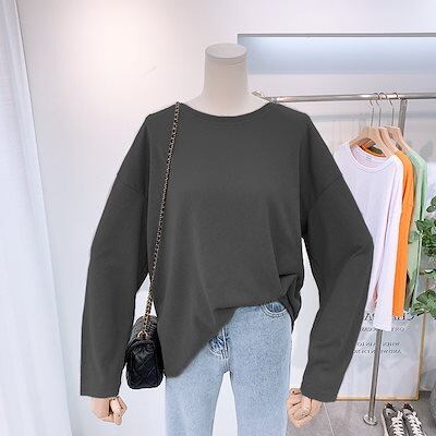 無料!初秋 薄い長袖 Tシャツ レディース シンプル 無地百掛け 長袖トップス 韓国ファッション ゆったり 着痩せ スウェット tシャツ 怠惰な風スウェット