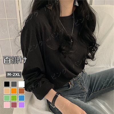 秋定番 百掛け 長袖Tシャツ シンプル無地スウェット 初秋薄 アンダーウェア韓国ファッション ゆったり怠惰な風 長袖 トップス 流行り インナー 大きいサイズ tシャツ レディース★1
