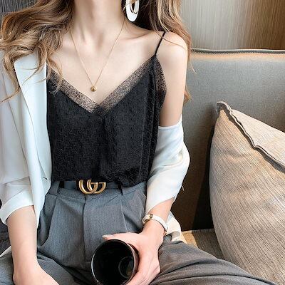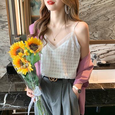 夏 レースメッシュ キャミソール レディース 韓国ファッション セクシー キャミソール インナー アンダーウェア 百掛け ノースリーブトップス 肌着 柔らかい 下着 おしゃれヨガウェア
