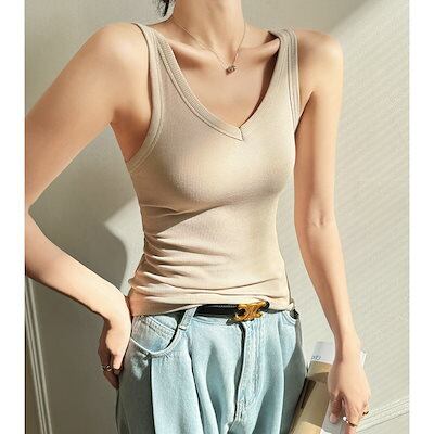 夏 Vネック 着痩せ キャミソール レディース シンプル 無地 百掛け 大きいサイズ ノースリーブトップス肌着 柔らかい 下着 快適通気 Tシャツ インナーおしゃれヨガウェア