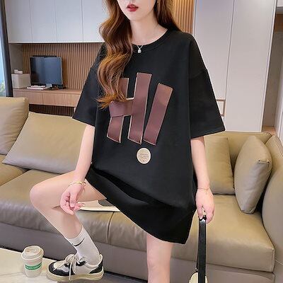 Tシャツカットソー 夏 ロングTシャツ 韓国ファッション 半袖 シャツ レディース セミロング 大きいサイズ 体型カバー? tシャツ ゆったり 怠惰な風 トップス/ブラウス