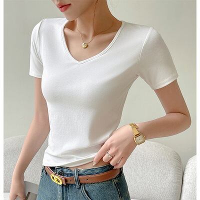 Tシャツ定番!無地 tシャツ 半袖 レディース快適 モダール 半袖アンダーウェア Vネック 着痩せ 百掛け トップスおしゃれヨガウェア スリミング 大きいサイズ Tシャツ