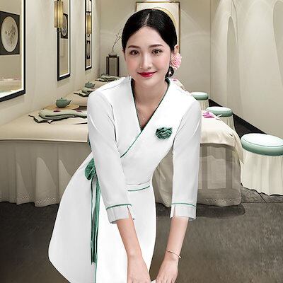 【上品 】サロンウェア ワンピース ユニフォーム エステ サロン通勤 レディース 女性 制服 半袖 気質 美容 介護 美容院通勤 スキンケア ワンピース セットアップ