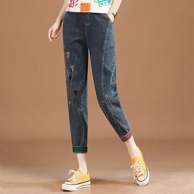 ウエストをゆるめて刺繍した9点ジーンズの新作韓国版カジュアルパンツ