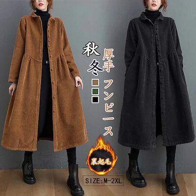 秋冬裏起毛厚手長袖ワンピースレトロゆったりコーデュロイカジュアルアウターロング 怠惰な風 防寒 大きいサイズ レディースワンピース ロング丈 アウターコート