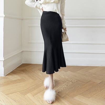 秋冬フィッシュテールスカート ハイウエストカットスカート女子丈の毛糸A字大振り プリーツスカート ロングスカート 可愛い ハイウエスト タイトスカート 流行り 百掛け