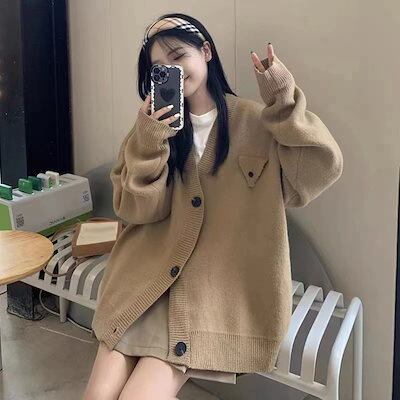可愛い ニットカーディガン レディース トップス 長袖 ニットアウター 秋冬 Vネック 通勤通学 オシャレ おしゃれ 保温 ベーシックニットカシミヤタッチ 福袋