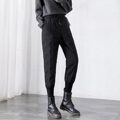 無地 厚手 中綿パンツ サルエルパンツ ボトムス テーパードパンツ ズボン レディース カジュアル シンプル 秋冬韓国 ファッション 脚長効果!スキニーパンツ ひんや