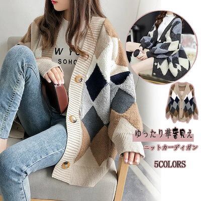 秋冬 新作 おしゃれ 気質 ニット カーディガン トップス アウター セーター ベーシックニット Vネックニット 着痩せ メリヤスカシミヤタッチ 福袋