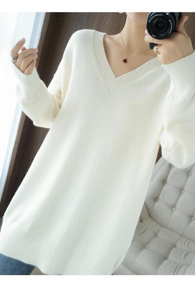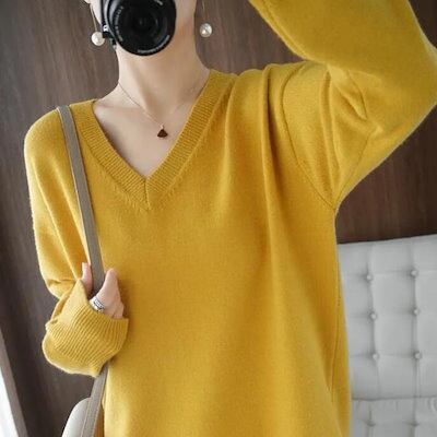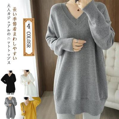 ニット セーター レディース Vネックセーター Vネックニット 秋冬 ロング ニットトップス 長袖 トップス チュニック プルオーバー ドルマンニット リブ 可愛い ゆったり 体型カバー シン 福袋