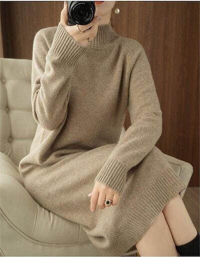 ニット セーター レディース ハイネックニット 秋冬 ロング丈 ニットトップス トップス チュニック プルオーバー ドルマンニット リブ 可愛い 着痩せ ゆったり 体型カバー シン 福袋