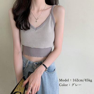 キャミソール ボーダー柄 ショート丈 ?国 ファッション