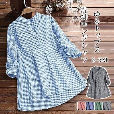 シャツ ブラウス チュニック チュニックシャツ チェック柄 トップス レディース 長袖 シンプル 春 夏 秋 ゆったり 大きいサイズ 体型カバー