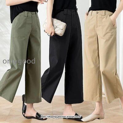 ワイドパンツ レディース 春 春服 ボトムス ロング コットン 9分丈 春夏 ハイウエスト ゆったり カジュアル 高見え 細見え 薄手 20代 30代 40代 50代