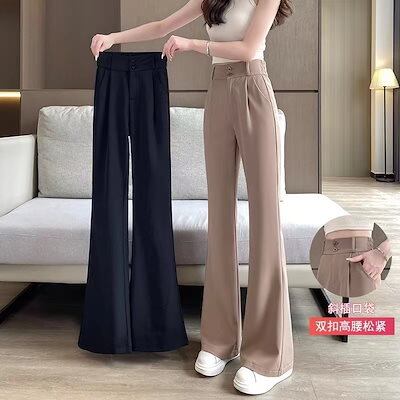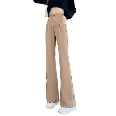 ワイドパンツマイクロスーツパンツ ハイウエスト スリム カジュアル ドレープ ワイドパンツ