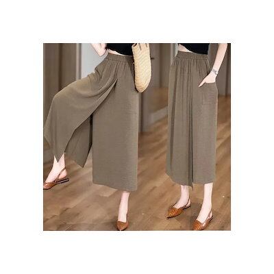 ワイドパンツゆったりハイウエストオープンスラウチースタイルカジュアルドレスパンツ股上太もも太め細め8分丈ワイドパンツ