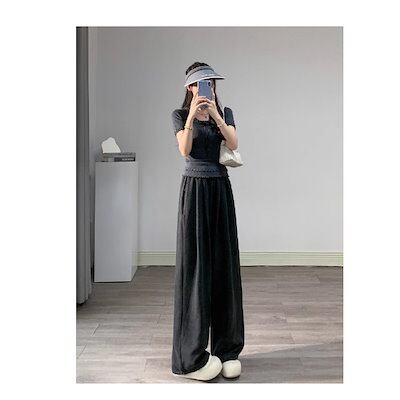 ワイドパンツ山本パンツアセテートカジュアルミルフアイスシルクワイドレッグパンツ