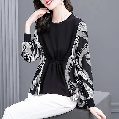 今っぽシアーシャツ 秋新作 シアーシャツTシャツブラウス レディース 体型カバーシフォンシャツ ロングTシャツ ウエスト引き締め 長袖 シフォン/トップス/ブラウスtシャツメガ割