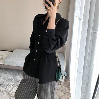今っぽシアーシャツ 秋 シアーシャツTシャツ Vネック ラウス レディース シフォンシャツ ロングTシャツ OL 通勤 着痩せ長袖 ウエスト引き締め シフォン/トップス/ブラウスtシャツメガ割