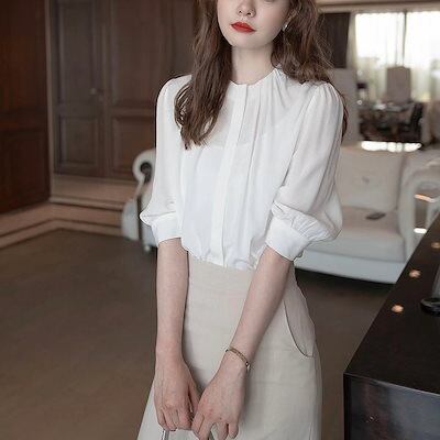 今っぽシアーシャツ 韓国ファッションOL 通勤 シフォンシャツ レディース デザインセンス ファッション Tシャツ着痩せ長袖 シフォン/トップス/ブラウスtシャツメガ割