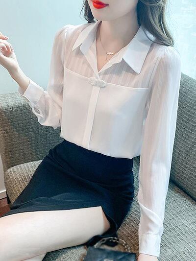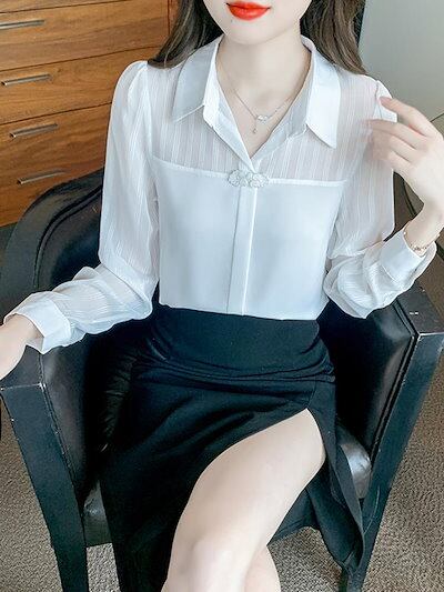 今っぽシアーシャツ OL 通勤 長袖 フレンチスタイル エイジング シフォンシャツ レディース Tシャツ着痩せ長袖 シフォン/トップス/ブラウスtシャツメガ割