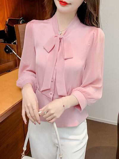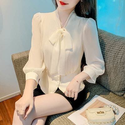 今っぽシアーシャツ ブラウス レディース シャツ OL リボンシフォン シャツ レディース 秋新作 7分袖
