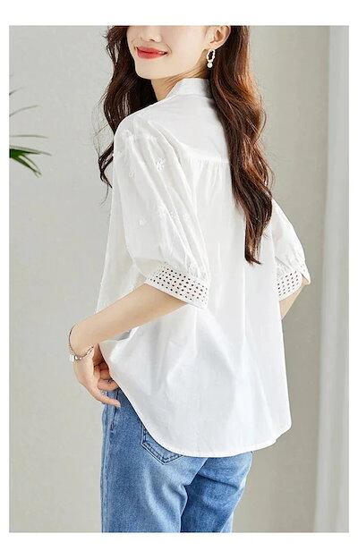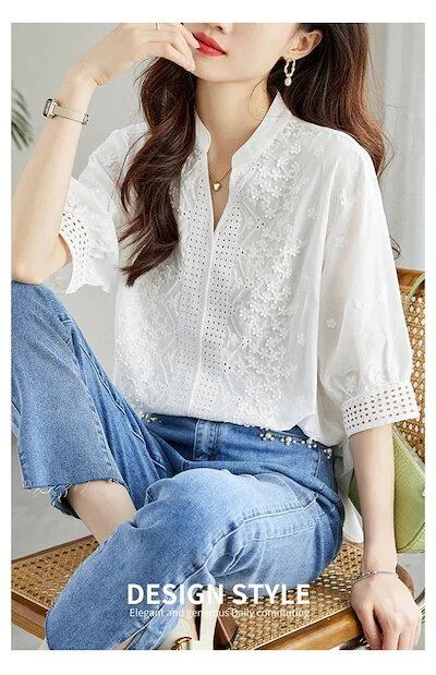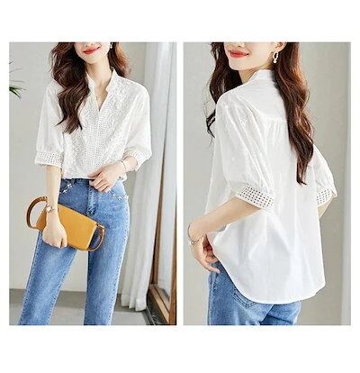 今っぽシアーシャツ 新作 ブラウス レディース トップス 半袖 ブラウス 刺綉 無地 大きいサイズ tシャツ 春夏 シャツ レディース