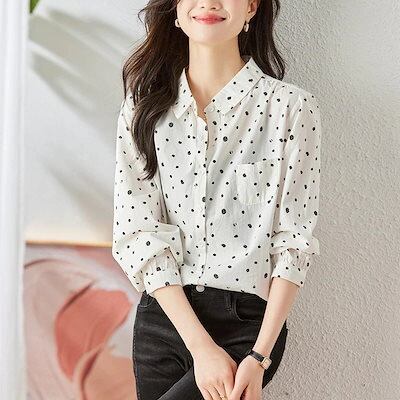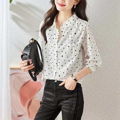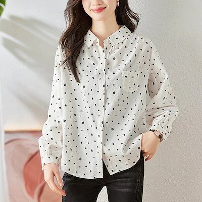今っぽシアーシャツドットプリントシャツ春と秋のゆったり通勤トップス 今っぽシアーシャツ 長袖 ブラウス レディース オフィス シャツ カーディガン
