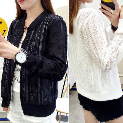 ゆったりスウェット 新しい2024夏長袖レース日焼け止めジャケット女性中空ショート野球ジャケット