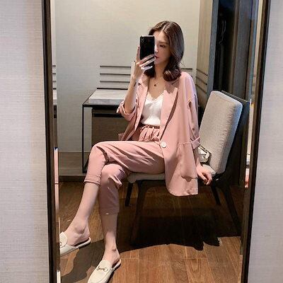 新作 カジュアル スーツ+ハイウエストパンツ セット 二点セット ビジネスセットウェア