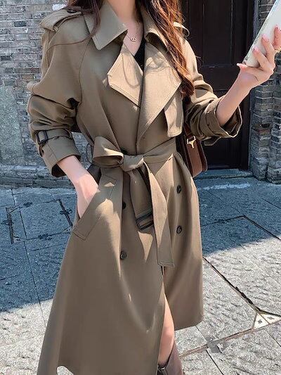 黒のパーカー女性2023新秋シーズンの英倫風ミディアム丈ニー韓国系着やせ気質コート