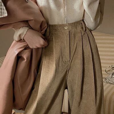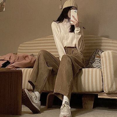 2024秋冬新作 韓国ファッションコーデュロイ ワイドレッグパンツ レディース シンプル ゆったり 大きいサイズ リラックス カジュアル ストレートパンツ