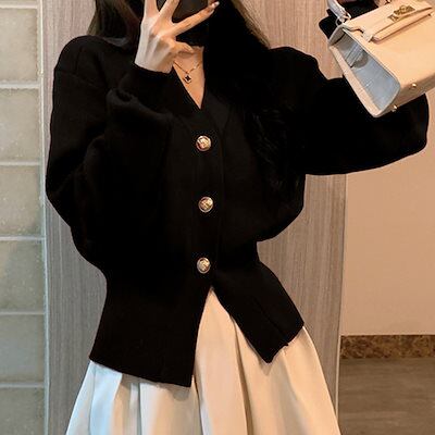 最安値挑戦 2024人気新作フレンチブラックニットカーディガン セーターカーディガン ニットコートトップスファッション 快適 アウター通勤