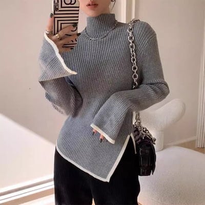 【本日限定】イレギュラーニットトップス タートルネックセーター ファッション 快適 アウター通勤