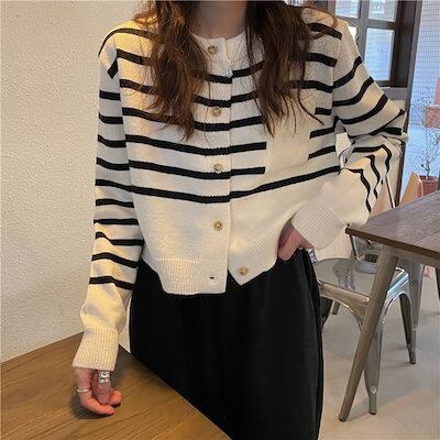 【本日限定】 ストライプのデザイン感セーター秋冬新作ゆったりレトロトップス ニットカーディガンコート ファッション 快適 アウター通勤