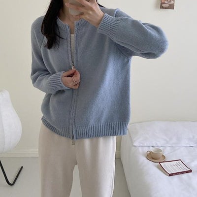 2024秋冬新登場! セーターコートダブルファスナー 秋冬ファッション丸首 デザイン感 ニットカーディガン レディース 秋服