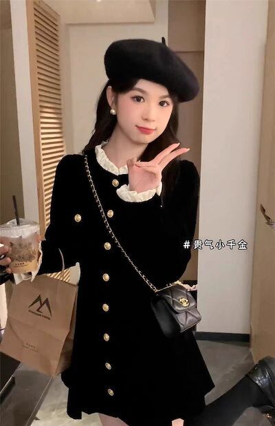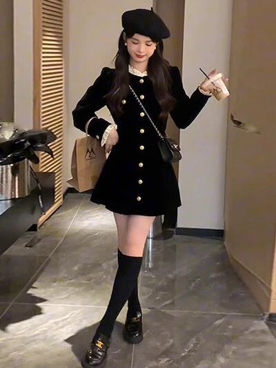 ベルベットワンピース2024新作秋服 長袖 レディース ファッション 新品追加