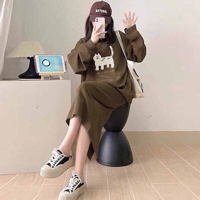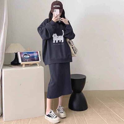 涼しく楽ちんセットアップ 大きいサイズ スウェット 2024 春秋 薄手 半そで スカート セット スカート ツーピース レディース 韓国ファッション